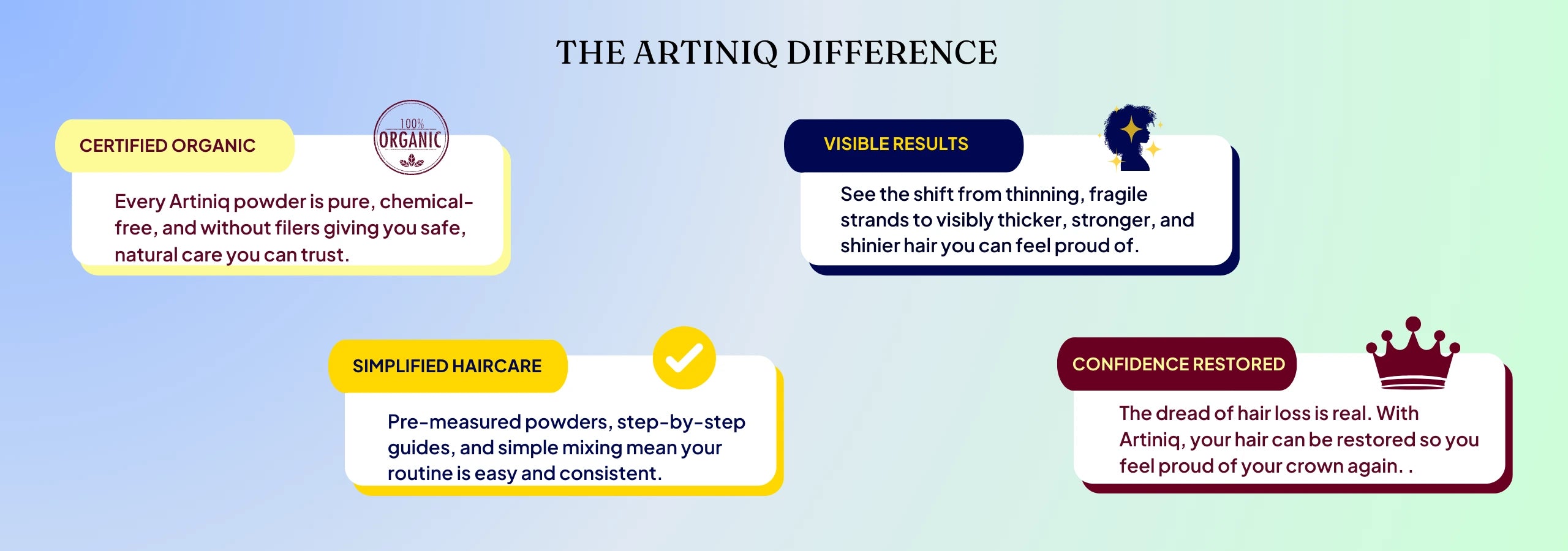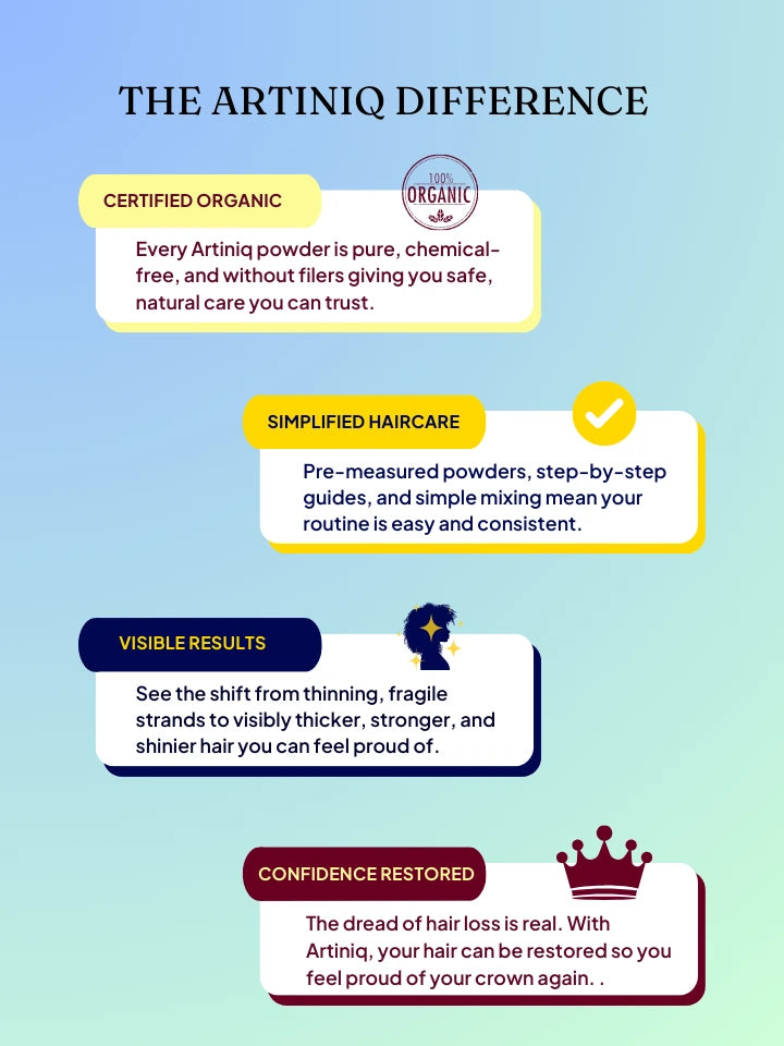 Artiniq blends tradition and science to deliver natural haircare that strengthens, nourishes, and transforms. Your journey to healthier, radiant hair starts here.