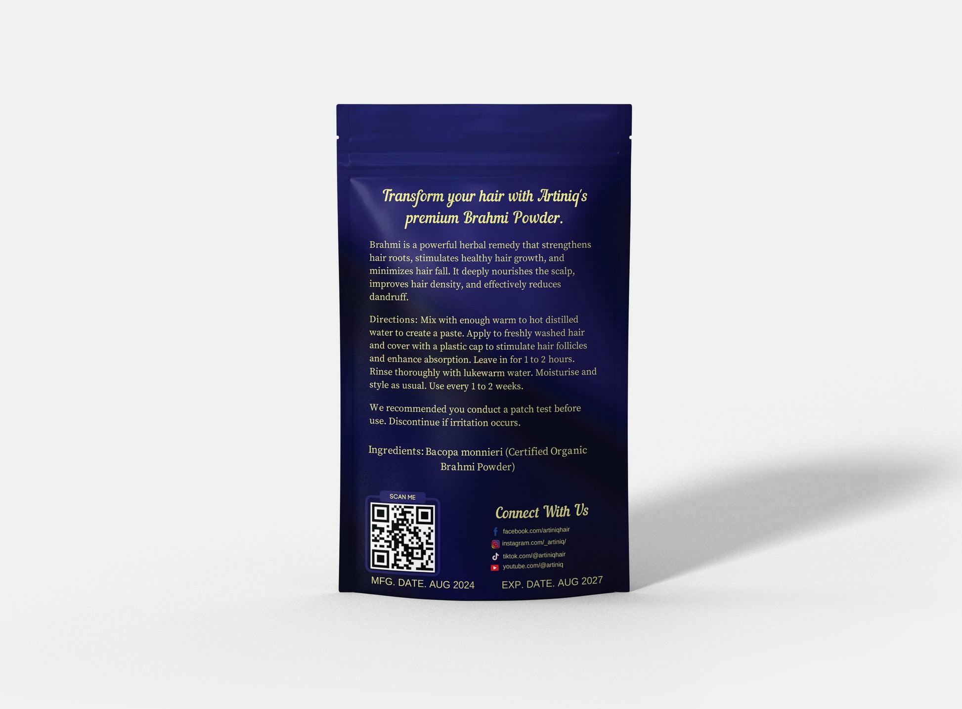 Sourced from organically certified Brahmi leaves, this powder nourishes the scalp and strengthens hair follicles, leading to healthier and thicker hair.